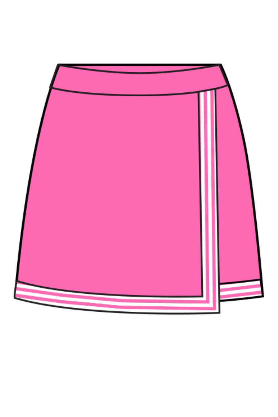 Welcome to our new Weston skort! Get the look of a sporty wrap skirt with all the invisible coverage of a short. This faux wrap style is ready to pair with our Mackinaw top. Adorned with coordinating trim this style will definitely up your game. Constructed of performance fabric that offers 4 way stretch, moisture-wicking, UPF and always cool to the touch. It is finished with two back welt pockets.